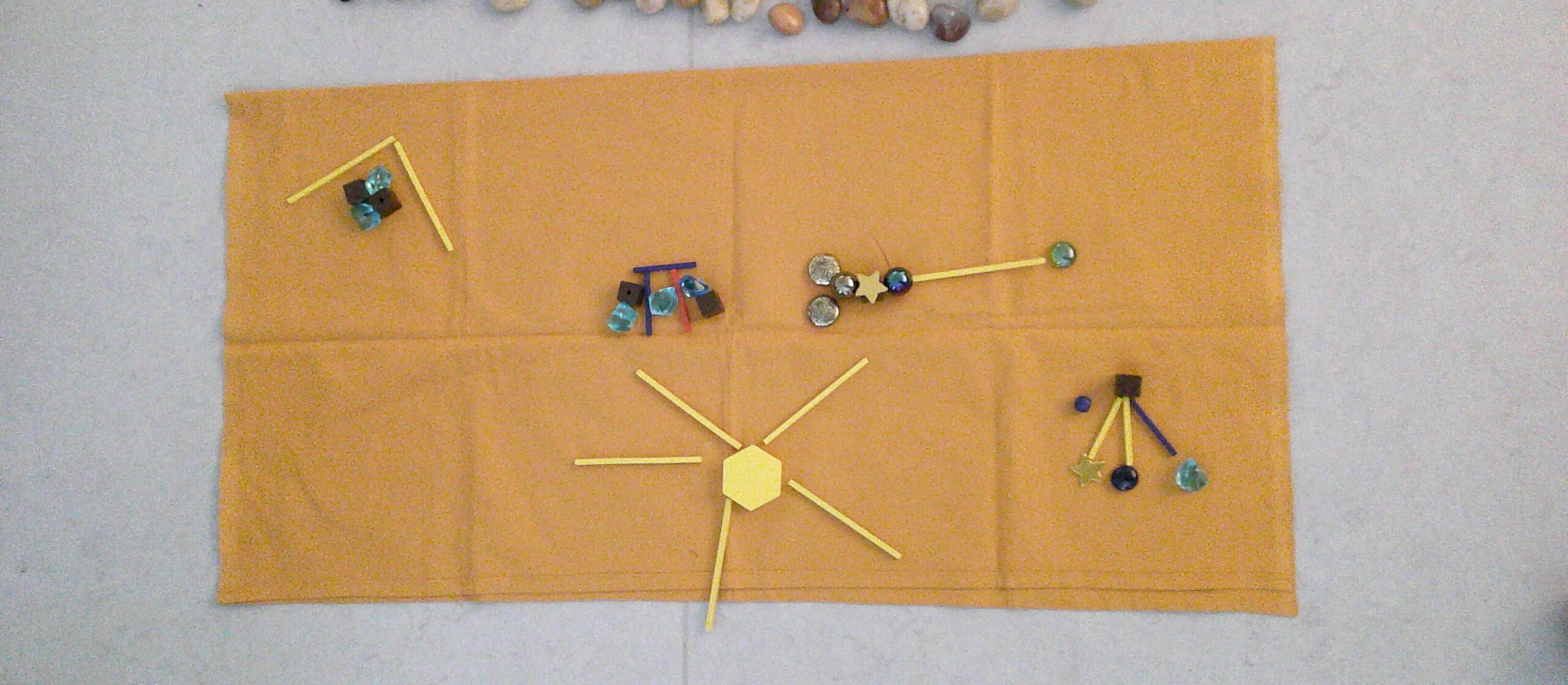 Heute haben wir dazu eine Legeübung gemacht. In die Mitte haben wir ein Tuch und eine Kerze gelegt, außen herum duften die Kinder ihre eigenen religiösen Symbole legen.