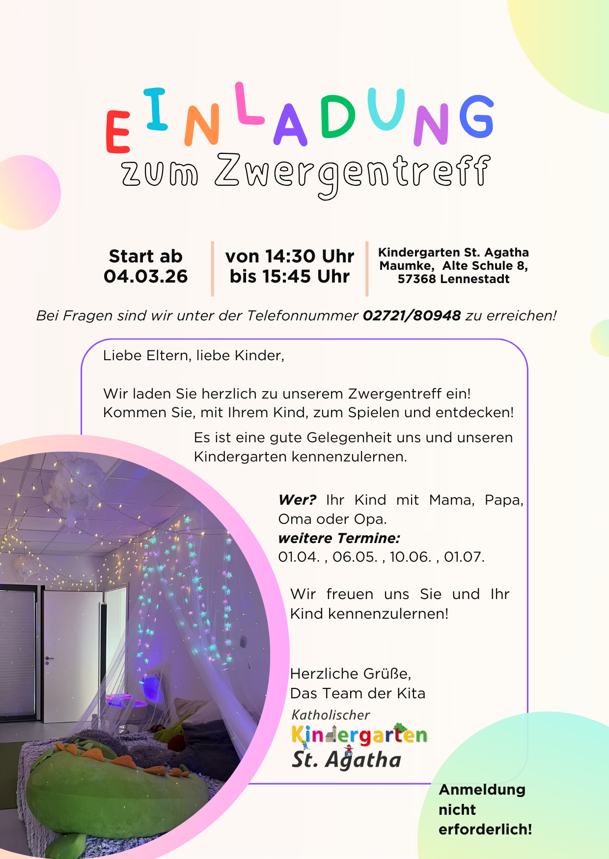 Wir laden Sie herzlich zu unserem Zwergentreff ein.